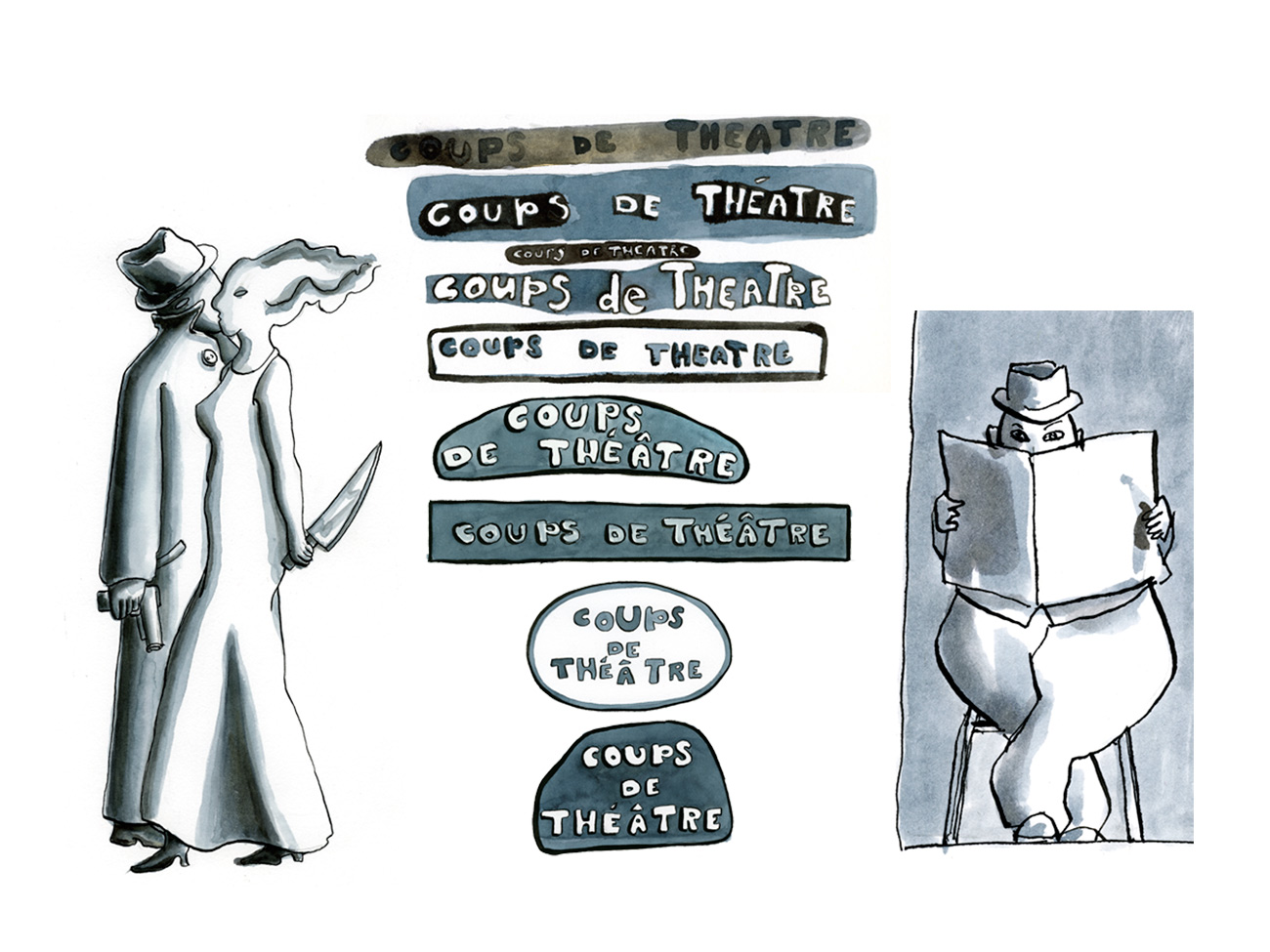 Dessins pour la création d'une affiche pour le festival de théâtre